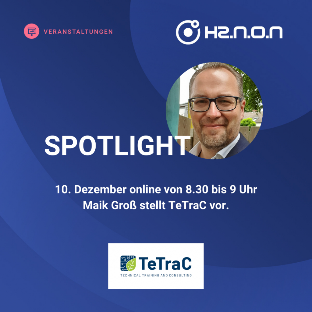 Unser Spotlight geht weiter! Am 10. Dezember präsentiert Maik Groß den Dienstleister für technische Trainings, Beratungen und spezielle Servicearbeiten. TeTraC. Mit der Einführung neuer Antriebstechnologien entstehen nicht nur technische Innovationen, sondern auch erhöhte Anforderungen an die Sicherheit. Praktische Trainings sind daher unverzichtbar, um die Arbeitssicherheit im Betrieb zu gewährleisten und Mitarbeiter optimal auf zukünftige Aufgaben vorzubereiten. Im Vortrag erhalten Sie einen verständlichen Einblick in: